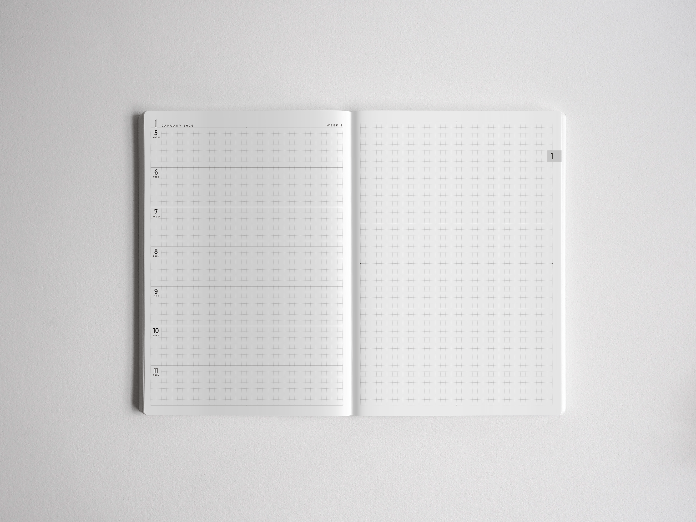 Our versatile layout adapts to your unique planning style, featuring a minimalist design on premium 52gsm Tomoe River paper. From vision boards to daily journaling pages, you can fully customize your experience.