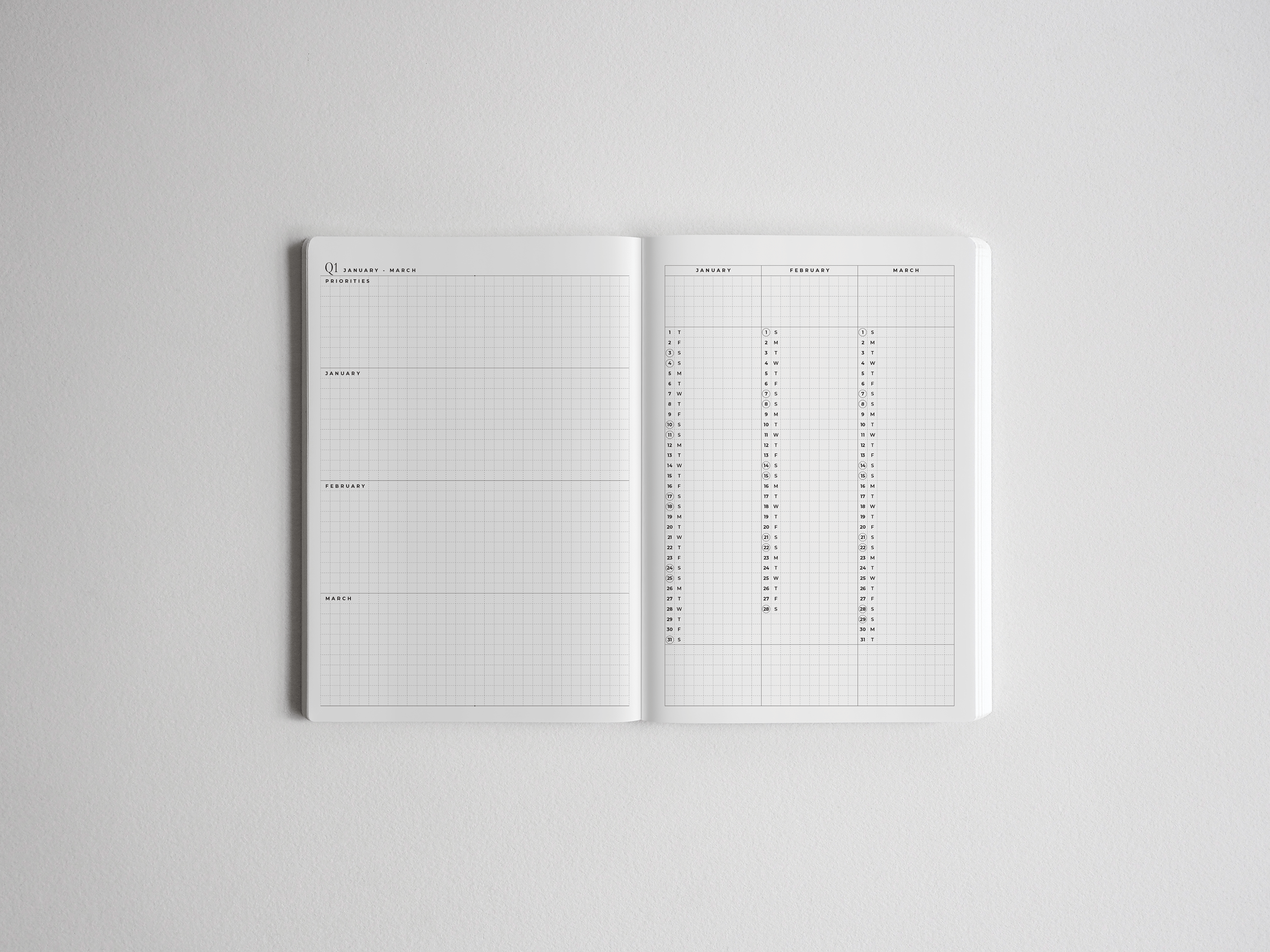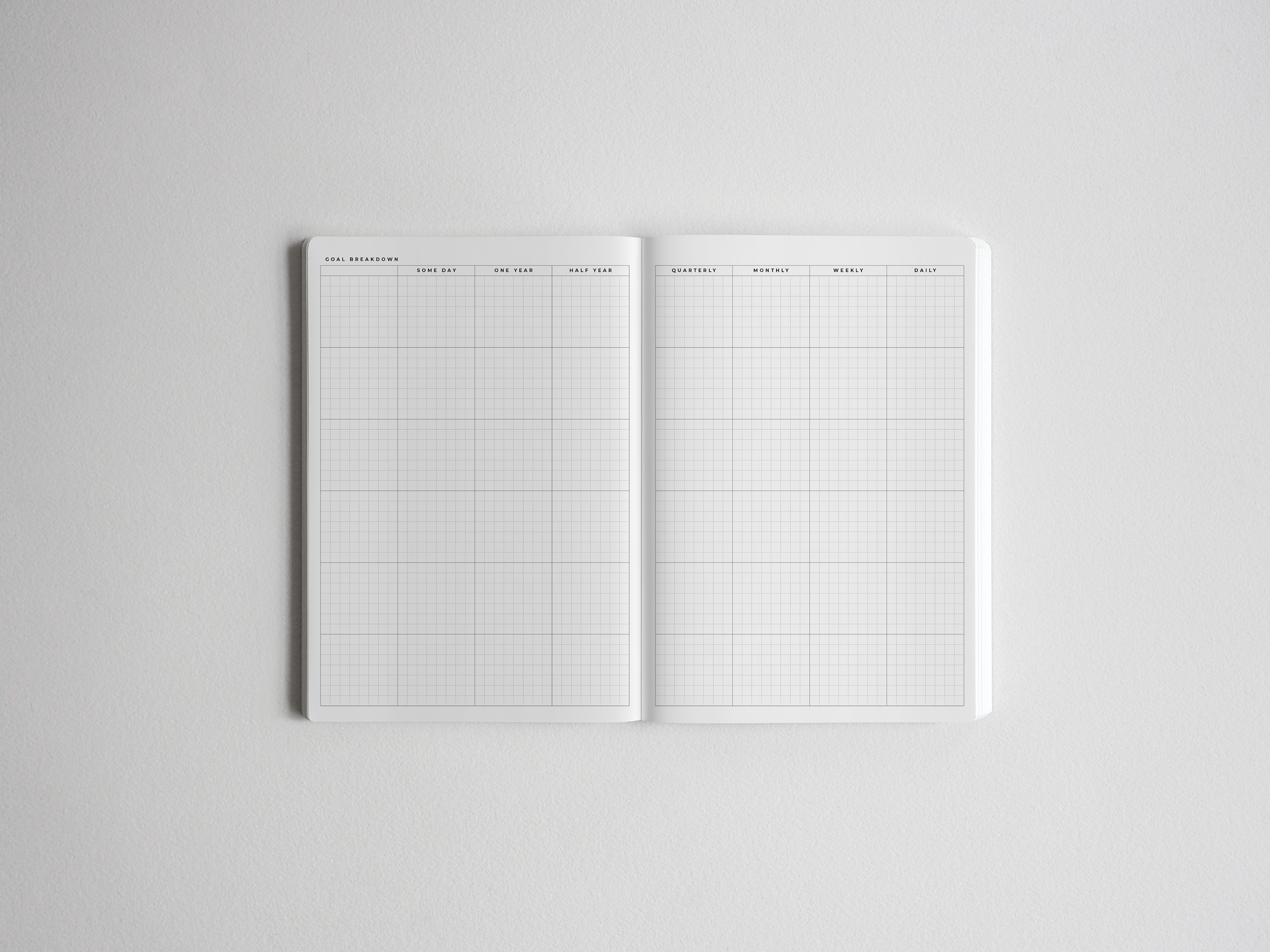Our versatile layout adapts to your unique planning style, featuring a minimalist design on premium 52gsm Tomoe River paper. From vision boards to daily journaling pages, you can fully customize your experience.