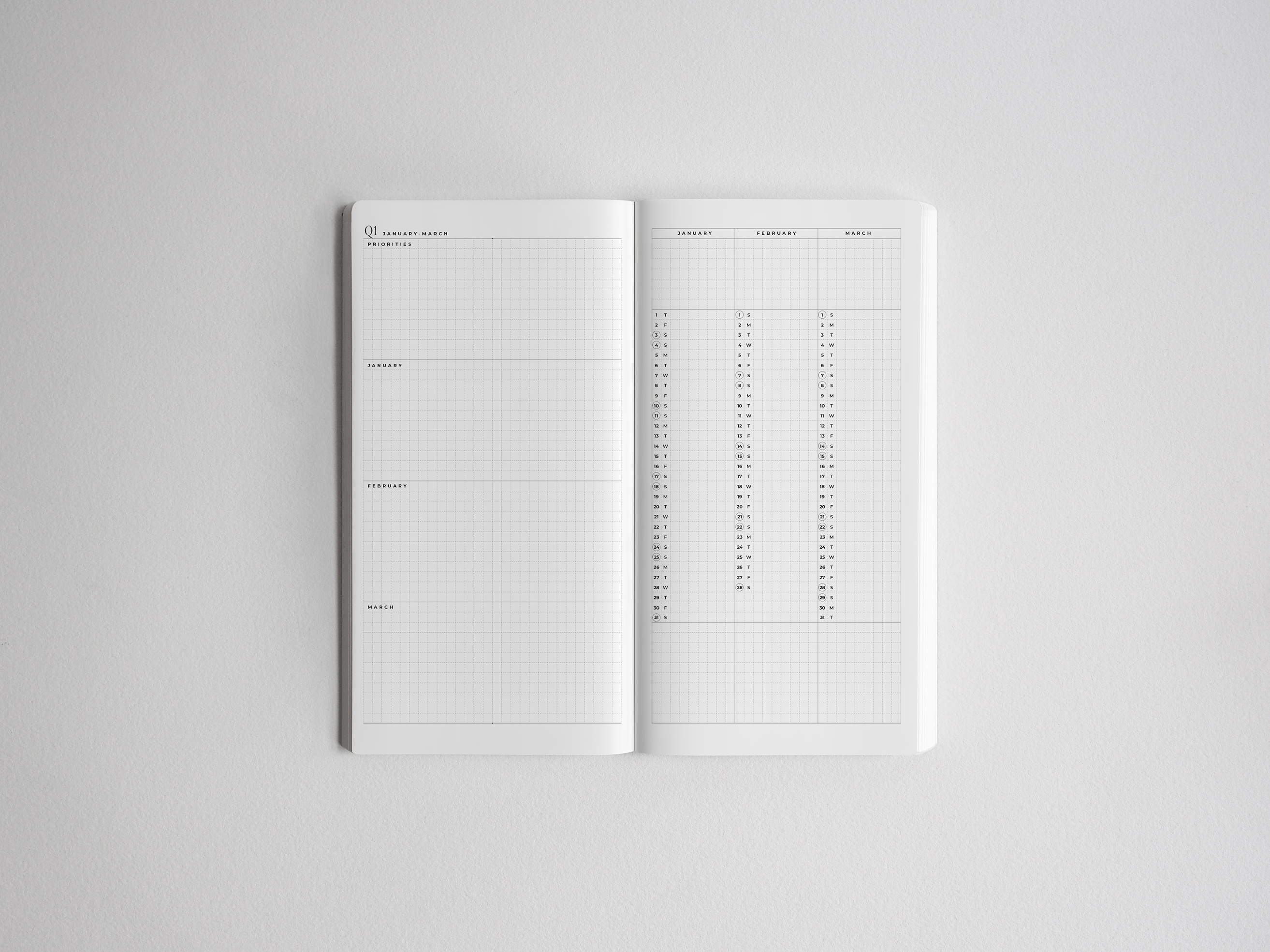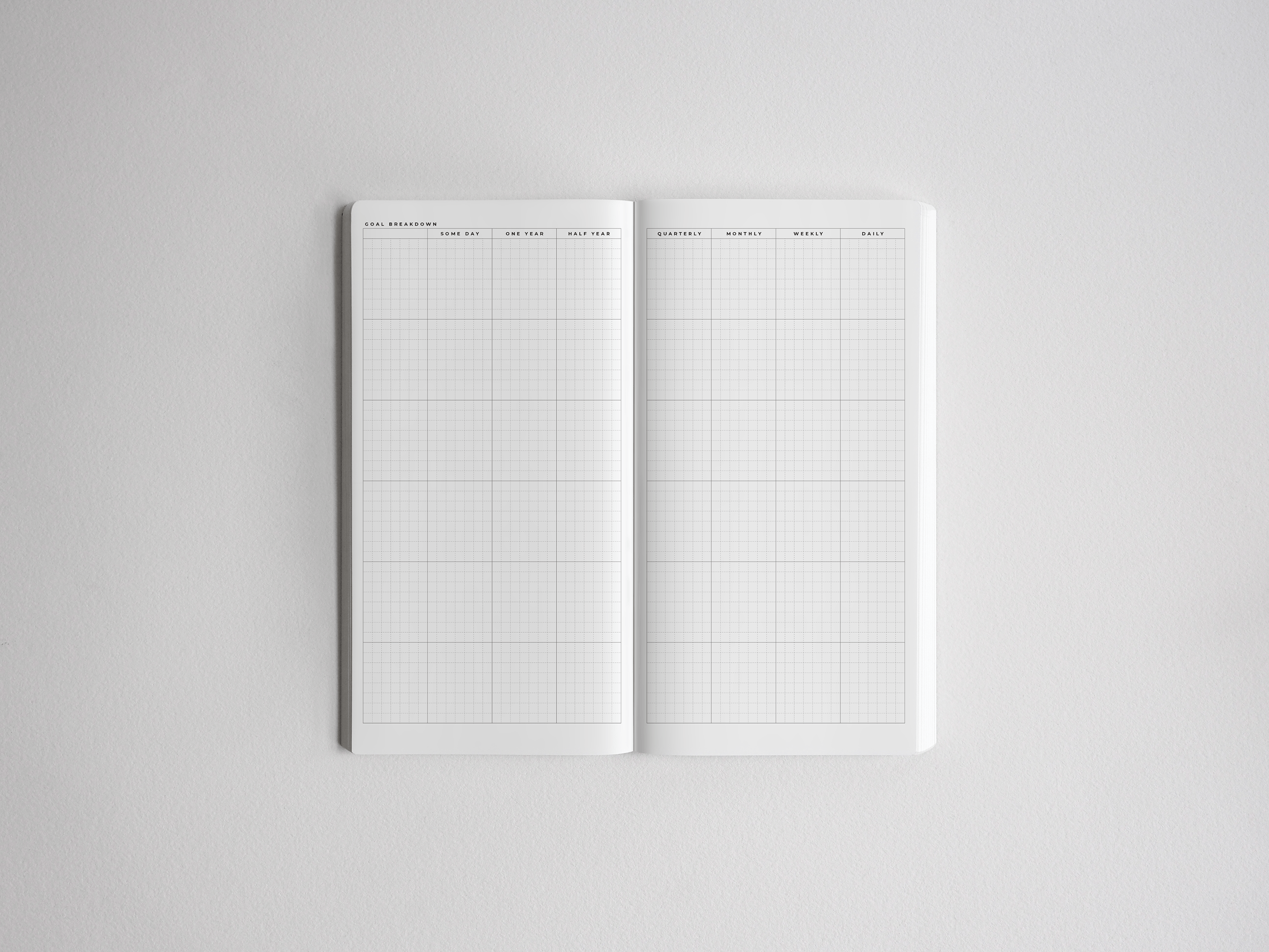 Our versatile layout adapts to your unique planning style, featuring a minimalist design on premium 52gsm Tomoe River paper. From vision boards to daily journaling pages, you can fully customize your experience.