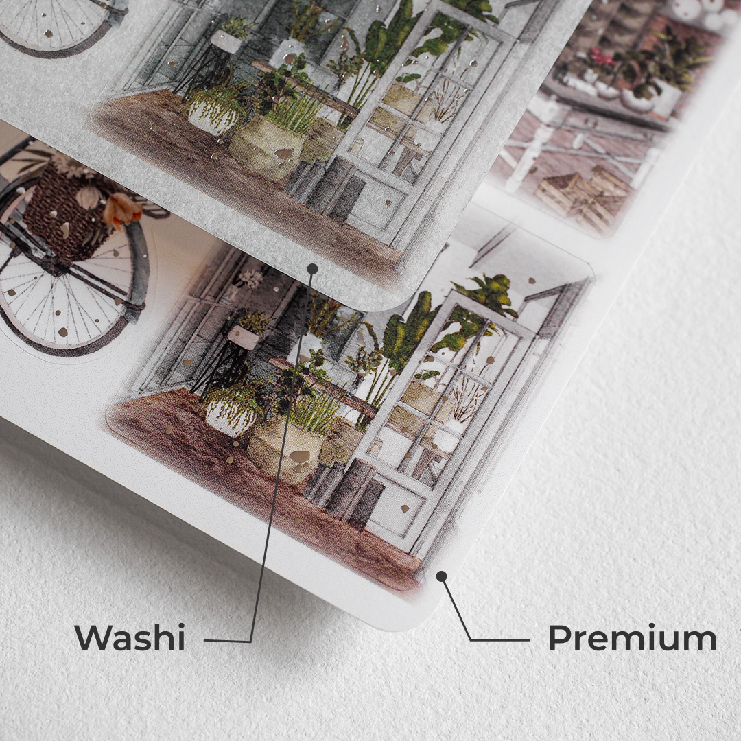 Pick your perfect match: go with our durable Premium stickers for a smooth, luxe feel, or choose Washi for a soft, writable texture with a papery charm.